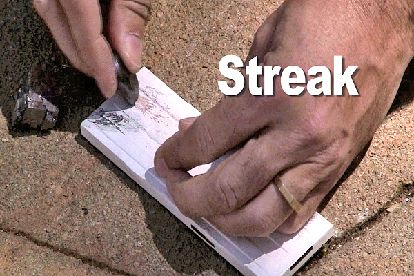 To perform the streak test, you rub a specimen on a piece of unglazed porcelain tile. Go to your local hardware store, and look at the backs of their floor tiles. You want a tile that is made of porcelain, and the unglazed back should have a white color.