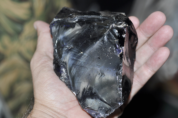 Obsidian is formed when very hot lava cools so quickly that there is no time for mineral grains to crystallize. Instead, the lava cools into glass with no crystalline structure. Obsidian us usually dark, but can range from black to light brown in color, depending on what chemicals it contains.