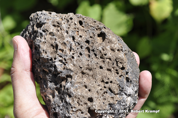 While it is underground, magma contains dissolved gases. When it reaches the surface as lava, the gases escape, just like the bubbles you get in a glass of carbonated soda. As the lava starts to cool, it gets thicker as tiny grains crystallize. The thicker lava causes the tiny bubbles to combine into larger bubbles and traps them, forming scoria.