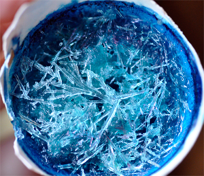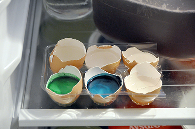 If you want brightly colored crystals, add a drop of food coloring. You might even try adding small drops of two or more colors to the same shell. Be sure to leave some of them uncolored, because I think the pure crystals are prettier than the colored ones.