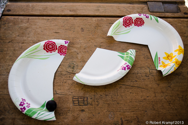 OK, now it is time to take the next step. Cut a section out of the paper plate. You can use the photo at the right as a guide for making your cut.