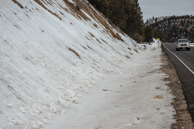 I recently presented a session on teaching electricity at the Utah Science Teachers Association Conference. On my way home, I did quite a bit of photography of the snowy landscape, but one roadside slope caught my eye. Driving past, I saw something that I had only seen in books, and a few recent weather articles. Snow rollers! They are usually quite rare, and of the hundreds of snowy road cuts that I passed on the drive home, this was the only one that had them.