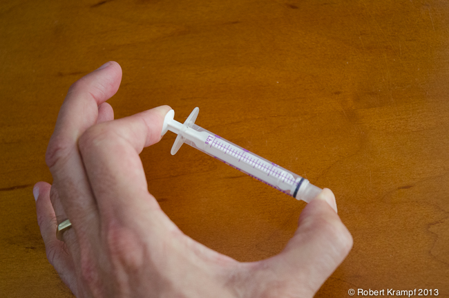 - a syringe, without the needle. Check with your Dr. or pharmacist for this.