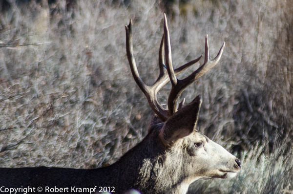 That is changing. Every year, more and more mule deer are showing up in our area with asymmetrical antlers. Why? Because hunters (the major predator of mule deer at this time) prefer to shoot deer that have pretty, symmetrical antlers. They will often decide not to shoot a buck with “ugly antlers”, waiting for a nice trophy to mount on the wall. As a result, there are more bucks with asymmetrical antlers around at breeding time. Since this is a genetic trait, more fathers with unbalanced antlers means more offspring are born with the allele for asymmetrical antlers. The frequency of the asymmetrical alleles has changed.