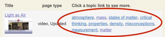 Organizing this site has always been a challenge, and the more it grows, the more difficult it is to find ways that everyone can find what they need. With more than more than 250 videos, and more than 1500 pages of experiments, science photos, Learnalong units, etc., scrolling through all the pages to find what you want can be overwhelming.