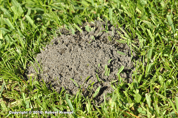 If you live in the Southeastern US, you probably recognize this harmless looking pile of sand as a Fire Ant nest. Any disturbance causes them to rush out for the attack, biting and stinging. Still, they do something that almost makes them worth having around. What is it?