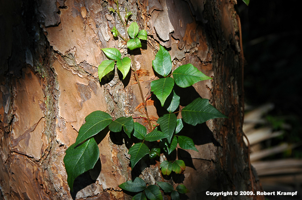 It is Poison Ivy, a plant that I am very familiar with. Recent studies at Harvard have shown that increased levels of carbon dioxide make Poison Ivy grow faster, and increase the potency of urushiol, the chemical that causes the allergic reaction.