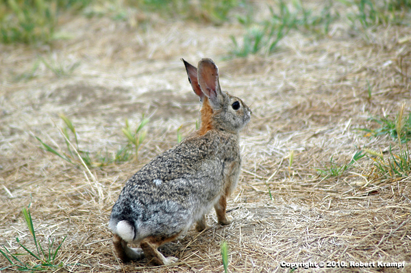 From this angle, it is easy to see the cotton tail that gives this rabbit its name. The Cottontail Rabbit shares one thing with hares that no other rabbits do. What is it?