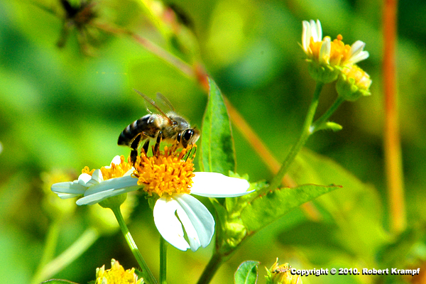 Bees visit flowers and drink the nectar from flowers, which goes to a second stomach called the honey stomach. There it is partially digested, regurgitated, and swallowed again several times. When the bee gets back to the hive, it regurgitates the nectar, which is eaten by other bees, and regurgitated again and again, until it reaches that proper level of digestion. Then it is regurgitated into a cell in the honey comb. The cell is left open while bees use their wings to blow air across it until most of the water has evaporated, leaving behind the thick, golden honey. At that point, the cell is sealed, preserving the honey until needed.