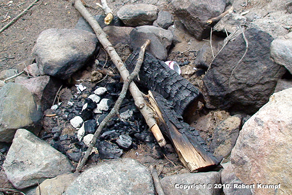 Why are some of the ashes from a campfire black, while other parts of the ashes are white?