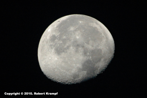 Hold the ball in your right hand and hold your right arm straight out in front of you. You want to hold it high enough that the light from the lamp hits it. This is like a full moon. The light hits the ball (moon), and reflects back towards the Sun and towards you (Earth).