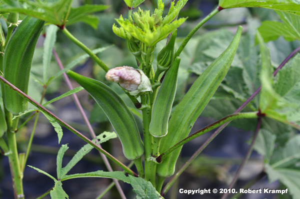 Okra is very closely related to cotton and hybiscus, so if you are wearing cotton clothing or hybiscus based scent, you are wearing a very close relative of okra.