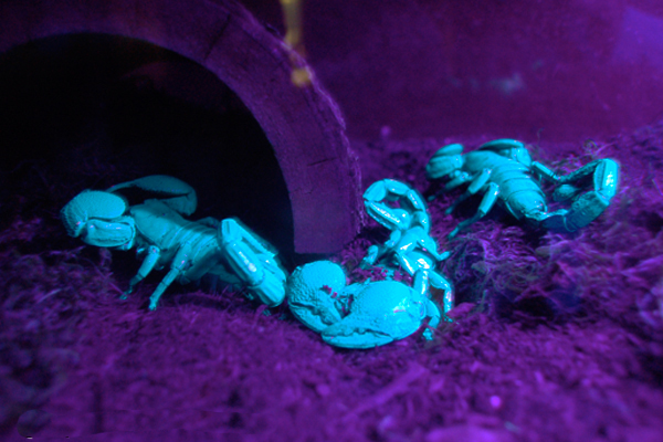 Interestingly, the process of fluorescence uses up some of the chemicals, and if the scorpion is exposed to UV for long periods of time, it stops glowing. After a few days, the chemical build back up, and it starts glowing in UV again.