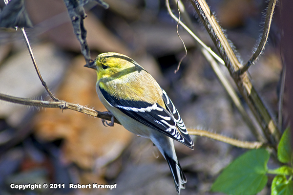 The American Goldfinch feeds almost entirely on seeds and plant material. While this diet is great for baby Goldfinches, baby Cowbirds need a diet with insects to survive. If a Goldfinch nest is parasitized by Cowbirds, the young Cowbirds starve on a diet of only seeds, letting the baby Goldfinches survive.