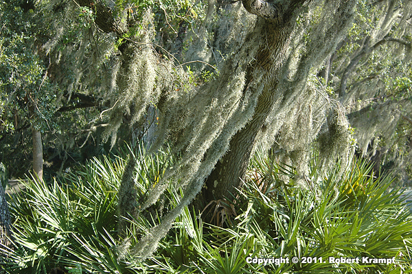 Spanish Moss grows best on trees with leaves that easily lose calcium, potassium, phosphorus, and magnesium. Rainwater leaches these minerals from the leaves, and is then absorbed by the Spanish Moss. Oaks seem to provide the best mix of minerals, so it is not unusual to see areas of mixed oak and pine, where all the oaks are covered, and the pines have little or no Spanish Moss.