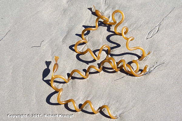 This is Kelp, a type of algae, but I am really hoping that one of you might have more information about why it is spiraling. My best guess is that these are young kelp, and the spiral may help them snag on the bottom so they can form a holdfast. If you know more, please let me know.