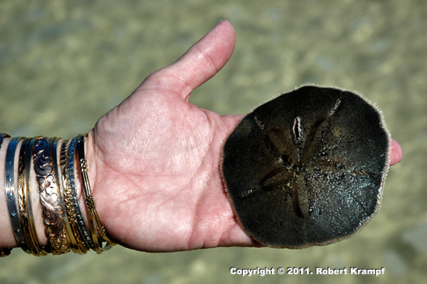 This Sand Dollar is still alive, and the "fuzz" is actually hundreds of tiny tube feet that it uses for movement and collecting food. Starfish, sea urchins, and other Echinoderms have similar tube feet.