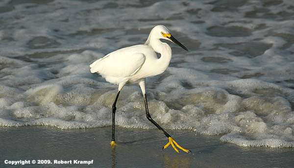 This is indeed a Snowy Egret. What looks like backwards knees on a bird are actually their ankles. Think about the last time that you ate chicken. The drumstick is actually their calf muscles. The thigh bone is inside the body and immobile. What looks like their hip, where the leg connects to the body, is actually their knee.