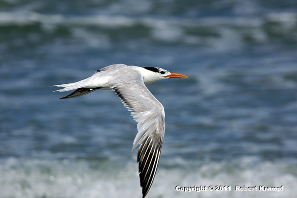This is a Royal Tern, but Audubon confused it with the Caspian Tern, combining the features of both into a bird that he included in his book "Birds of America" as the Cayenne Tern.