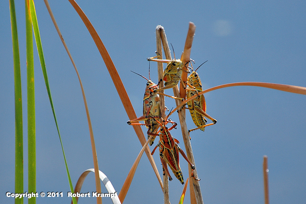 There are several species of short horned grasshoppers that are usually solitary, which under the right conditions, change their behavior (and often their color). The change causes them to seek other locusts, and move as a swarm. It also stimulates other grasshoppers to make the change to the locust phase.