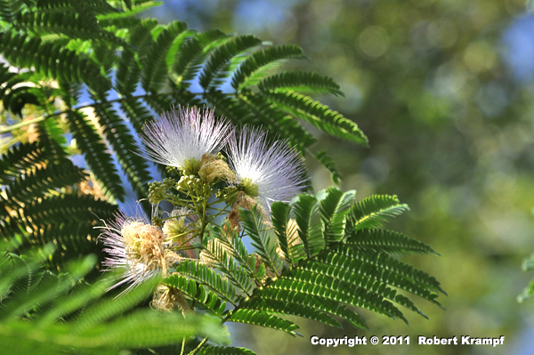 This tree is a marvelous example of why scientists rely on long, taxonomic names instead of common names. Many people use the common name Mimosa for this tree, but while both this tree, Albizia julibrissin (also known as the Persian Silk Tree) and true Mimosas are in the same family, along with beans, peas, and kudzu, this tree is only distantly related to the true Mimosas. The flower structure of the true Mimosa is very different from the flowers of this tree.