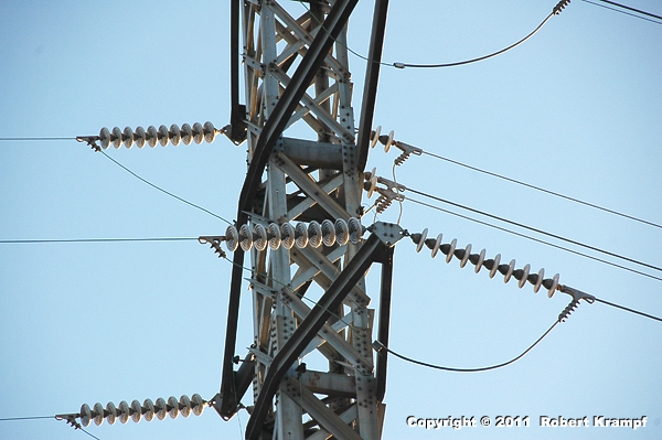 Why do the wires on high voltage lines have those things that look like a stack of plates?