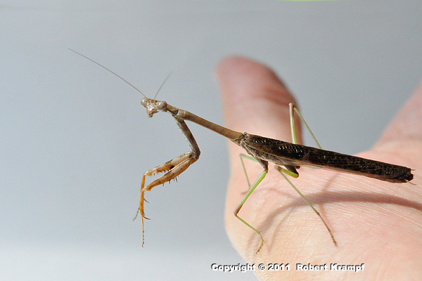 The group most closely related to Mantids are the Cockroaches, which makes some sense if you look at the spines on a roach's legs. Termites are also fairly closely related.
