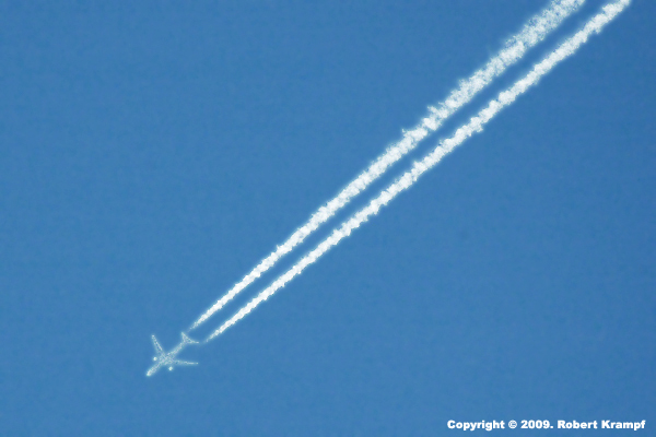 If the air is very moist, the contrail can trigger more condensation, and the contrail will grow larger, sometimes expanding to cover large areas.