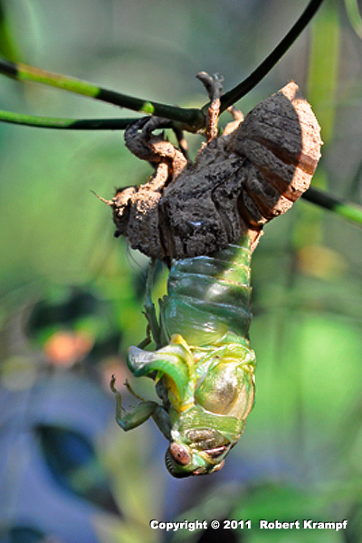 This molting Cicada is only half out of its larval skin, but it is already bigger than the exoskeleton it came out of. How is that possible?