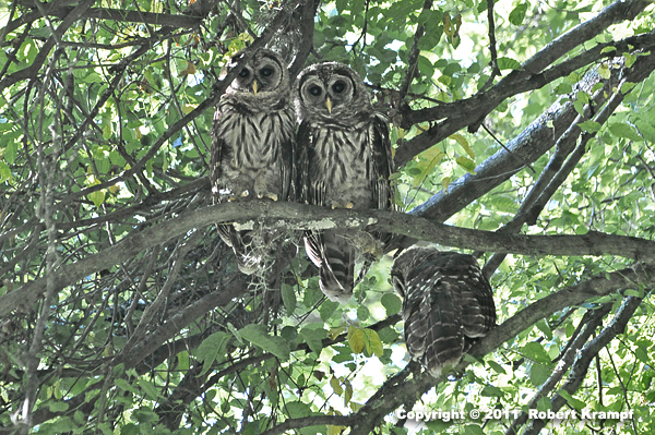 These three young Barred Owls grew up in our local park last year. Barred Owls lay up to 5 eggs, but it is rare for more than 3 to live to maturity. Why?