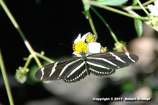 This Zebra Longwing butterfly eats nectar, but unlike most other butterflies, it also eats pollen. Zebra Longwings have a very long lifespan for a butterfly (up to 3 months as an adult), and it is thought that the nutrition in the pollen helps them live longer.