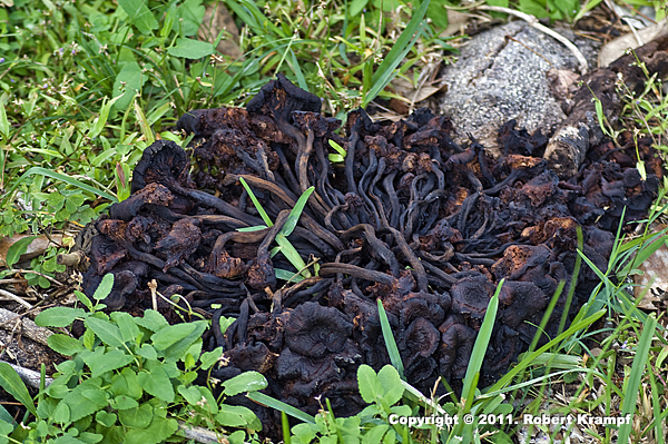 The mushroom is the reproductive part of the fungus, in some ways like a flower for a plant. The main part of the fungus is an underground network of white, thread-like structures called hyphae, which make up the mycelium, the "body" of the fungus. That mycelium network can be very large, in some cases more than 2000 acres, making these fungi some of the largest organisms in the world.