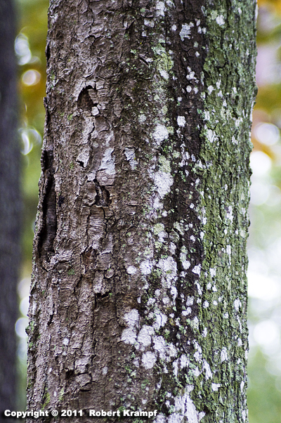 Moss grows better in shade, so it tends to grow on the shady side of the tree trunk. In the northern hemisphere, the north side of a solitary tree gets less sunlight, but in a forest, all sides of the trees are shady. With a clearing in the forest, the side away from the clearing will have more moss, as it gets less direct sunlight. That means that on the south side of the clearing, the south side of the trees will have more moss because the north side is towards the open area of sunlight. In this photo, the mossy side faces east, away from the tennis courts of our neighborhood park.