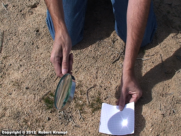 This is the opposite of what happens when you focus light through the lens of a magnifying glass. The convex lens of a magnifying glass refracts all of the light towards a central focal point, giving you a dark circle with a bright dot in the center.