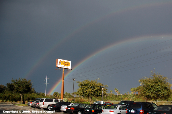The area between the two rainbows is called Alexander's Dark Band, after Alexander of Aphrodisias, not after Alexander's Ragtime Band, which is an entirely different thing.